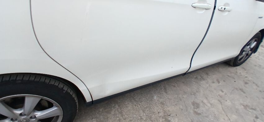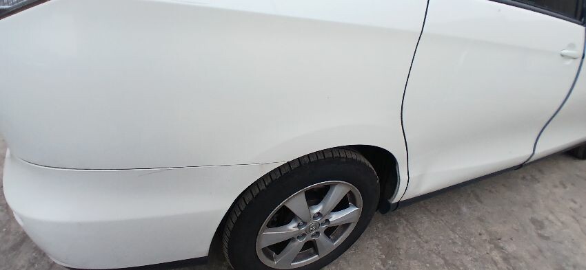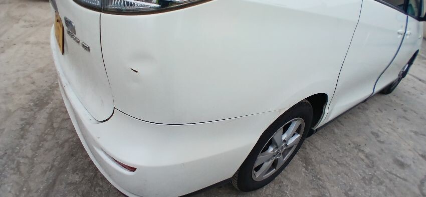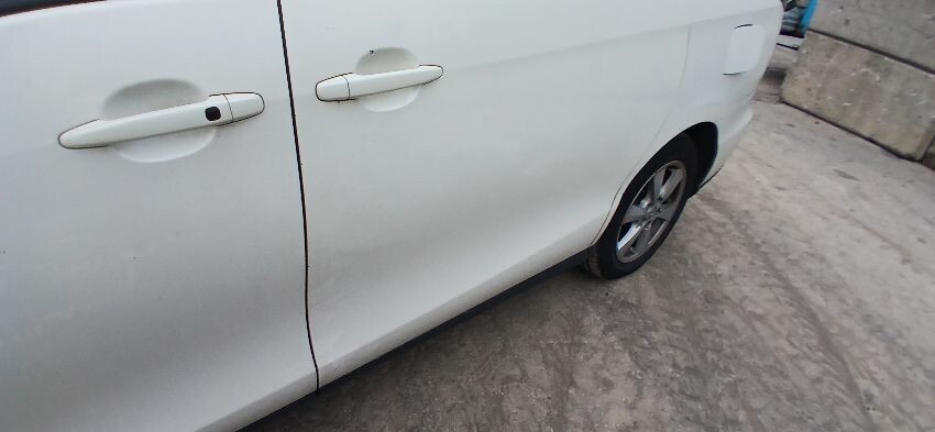 Front bumper, bonnet, n/s front wing, n/s wing mirror, n/s sliding door, n/s rear quarter, rear bumper, boot lid, o/s rear quarter, o/s sliding door o/s wing mirror, o/s front wing, scuffs and scratches all over, general wear and tear for age and mileage, interior soiled and full of rubbish