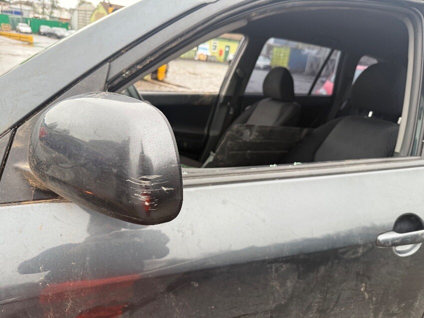 Locked, rear bumper, o/s/rear tyre, o/s/front window, o/s/front tyre, front bumper, n/s/front window, n/s/rear tyre, n/s mirror, general wear and tear.