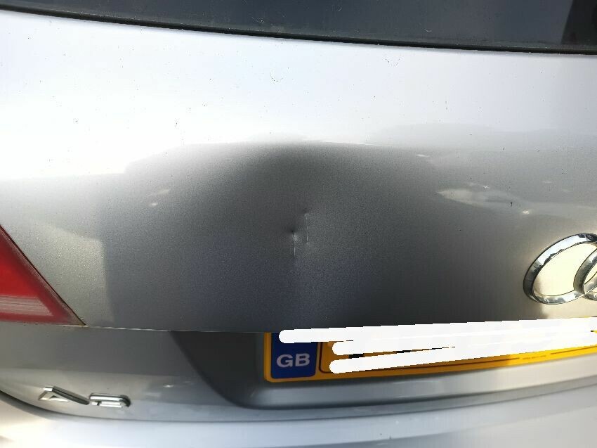Damaged engine cover, missing mirror in drivers side wing mirror dented rear bumper, dented rear hatch, hatch won't open, general wear and tear.