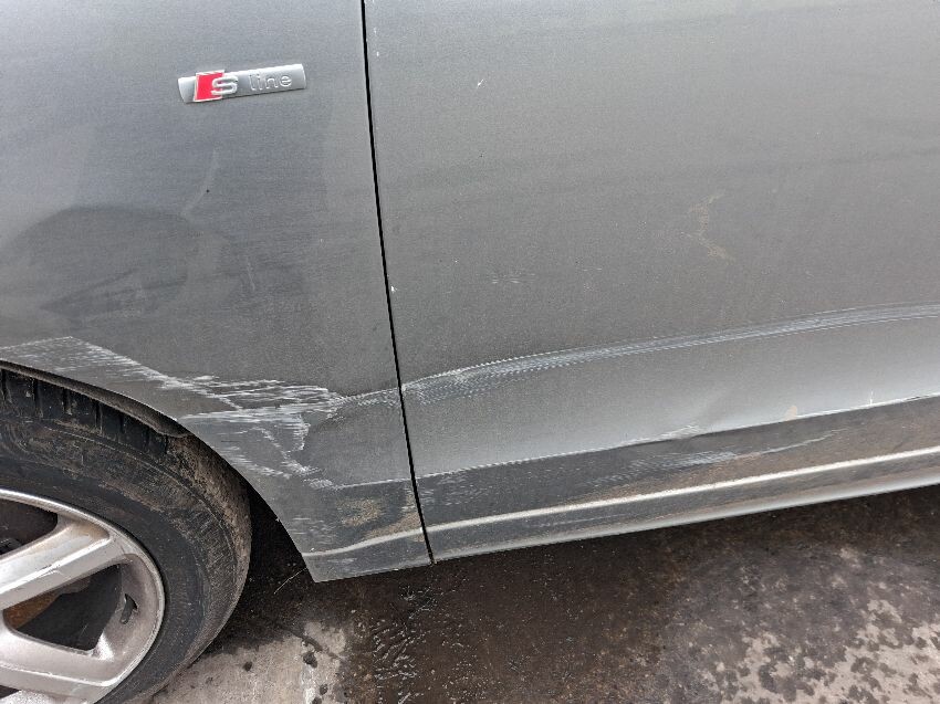 Both plates missing, no key, front headlights smashed, n/f/s front wing damaged, front bumper damaged, bonnet closing issue, n/s/f headlight scratched, front wing n/s damage n/s/f front door damaged, n/s wing mirror damage, n/s/r door damaged, n/s/r quarter damage, rear bumper damage, n/s/r quarter/bumper damage, drivers door damage and general wear and tear,