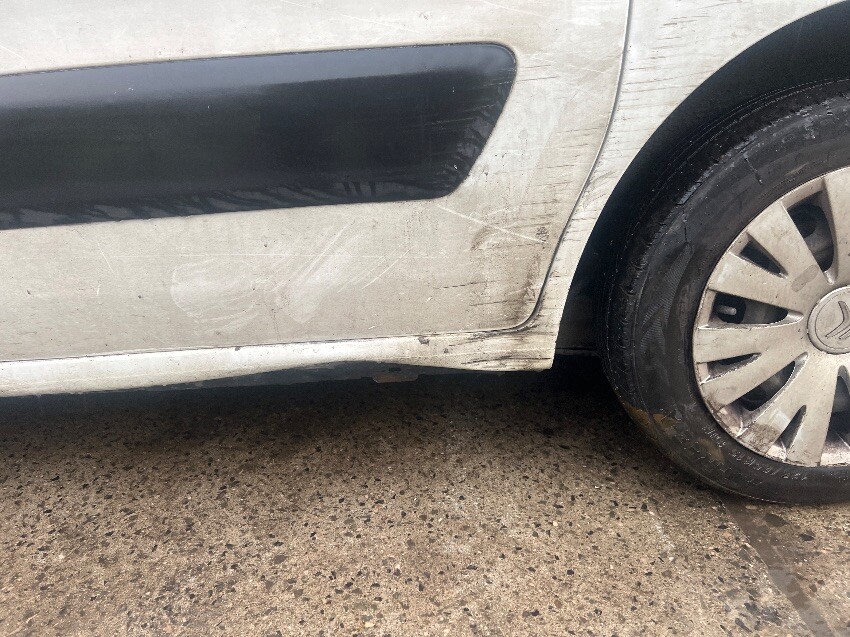 Rear doors, rear bumper, offside rear wheel arch, engine is rattling, front grill, front bumper, nearside sill, nearside front wheel arch, nearside side door, nearside rear wheel arch, interior plastics, general wear and tear.