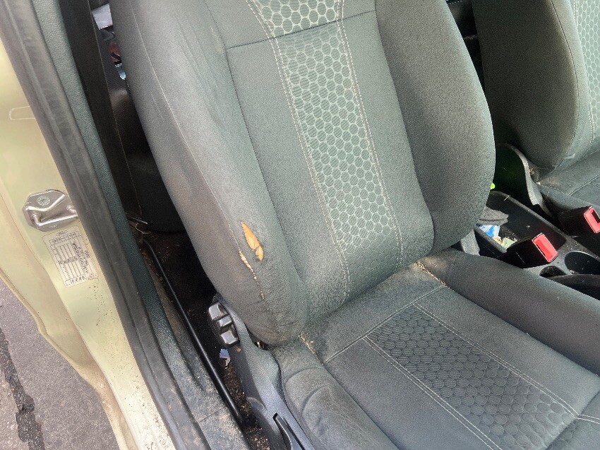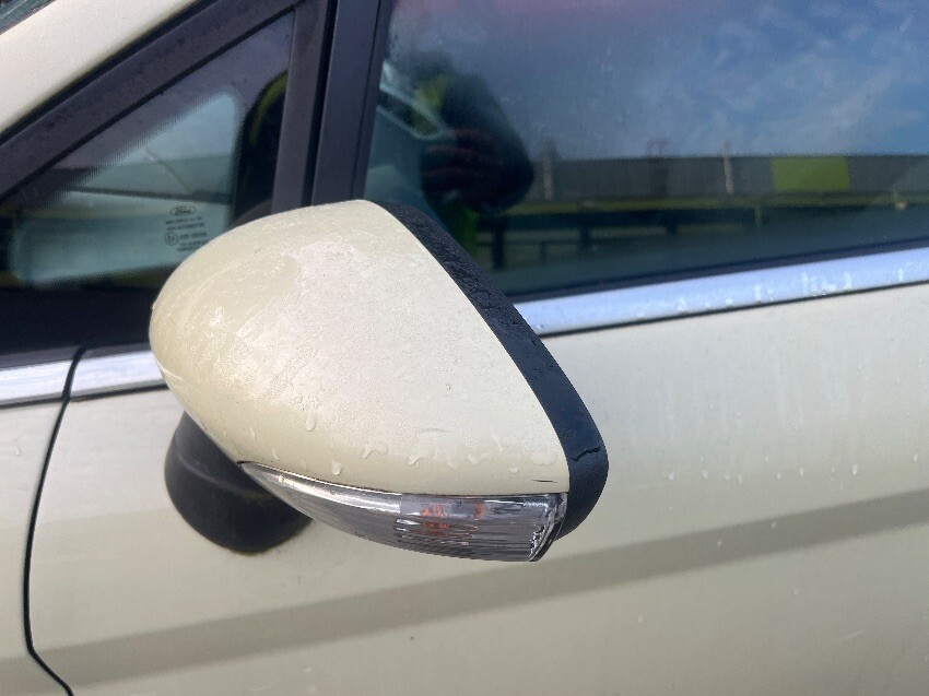Drivers seat, rear bumper, nearside rear wheel arch, nearside rear quarter, nearside front wheel arch, nearside wing mirror, front bumper, offside front wheel arch, offside wing mirror, heat shield rattle, clicking noise from engine bay, no coolant, general wear and tear.