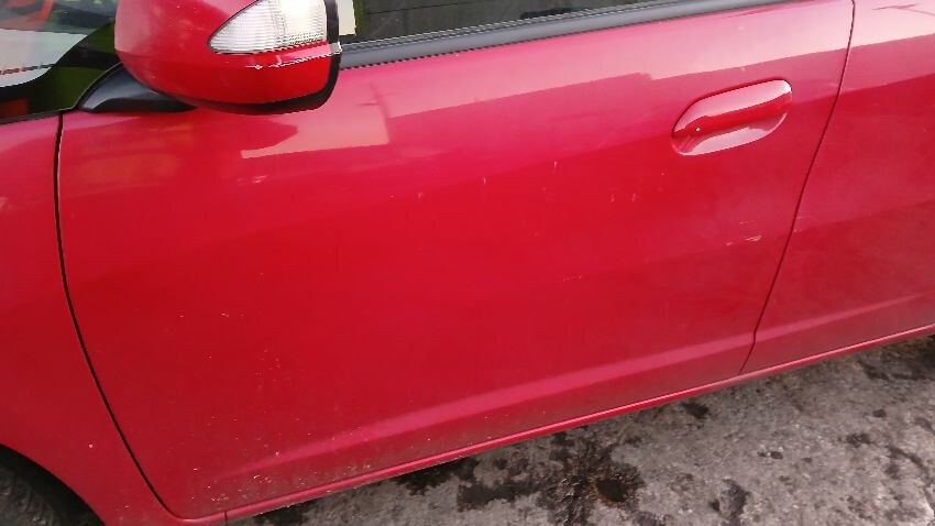Front bumper, n/s wing mirror n/s front door, n/s rear door, rear bumper, boot lid, o/s rear quarter, o/s rear door, o/s wing mirror, scuffs and scratches all over, general wear and tear for age and mileage, poor paint work