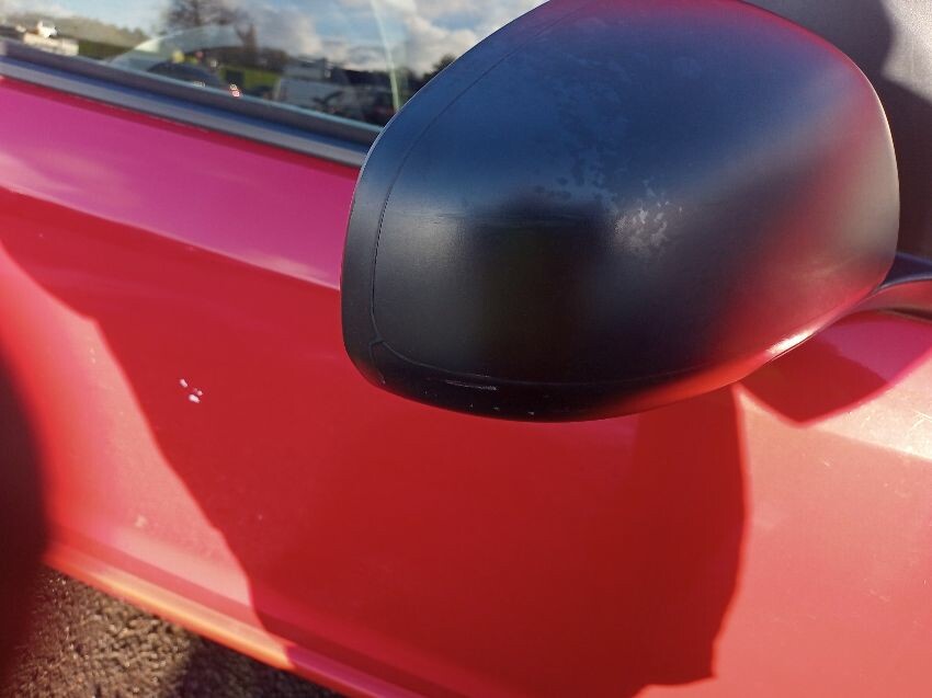 Struggles to start with a boost and cuts out shortly after, paint faded on various panels, bootlid doesn't stay upen, bonnet arm broken, rear bumper, os doors, os mirror, front bumper, ns wing, ns doors, roof, general wear and tear and scratches.