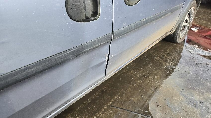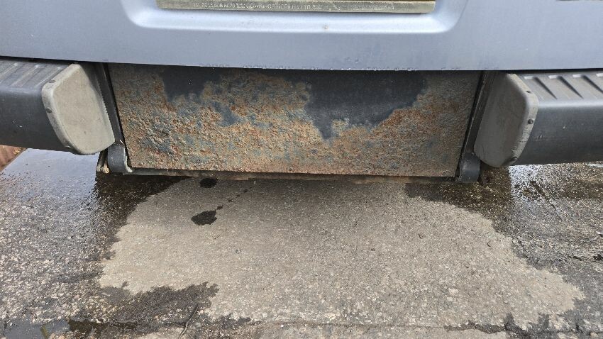 Interior in poor condition, leaking oil, o/s/f door damaged, o/s/r door damged, rear step plate rusting, front bumper damaged, noise from front suspension when turning the wheel, general wear and tear,