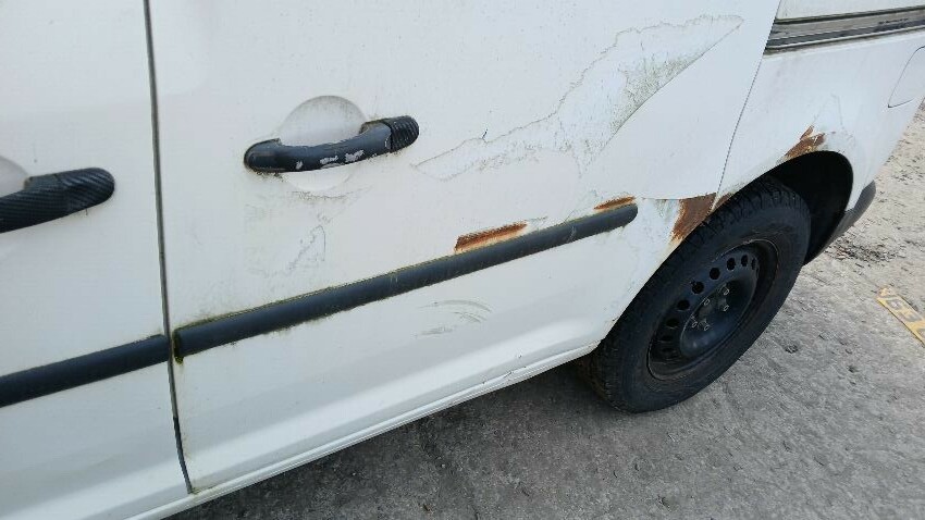 Front bumper, bonnet, bonnet catch broken, n/s complete, rear bumper, both rear doors, o/s rear quarter, o/s sill, o/s front wing, scuffs and scratches all over, general wear and tear for age, areas of rust throughout