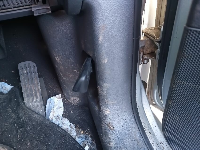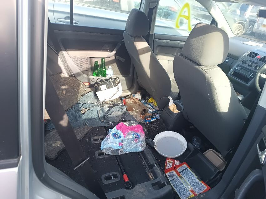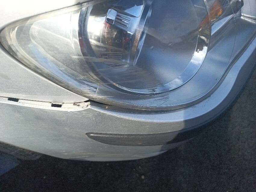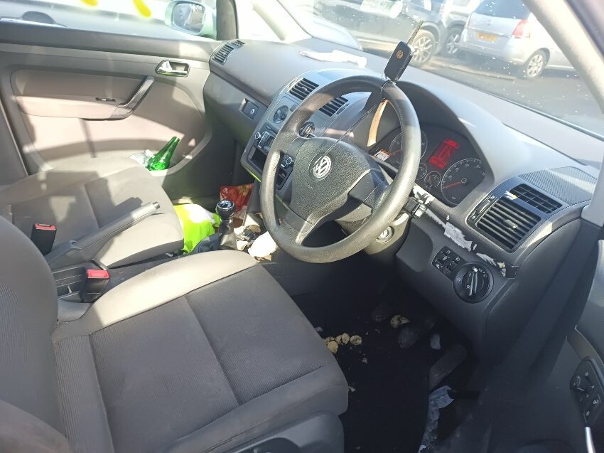 Bulb monitoring warning light is on, brake fault light is on, interior full of rubbish, bonnet release cable has snapped so can't open bonnet, front bumper loose & damaged, drivers side headlight scuffed, passenger wing mirror shell is loose & damaged, passenger side taillight has internal condensation, rear bumper loose, headrests missing off rear seats, drivers front door damaged, general wear and tear.