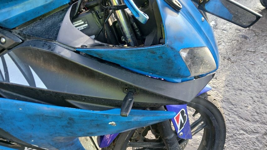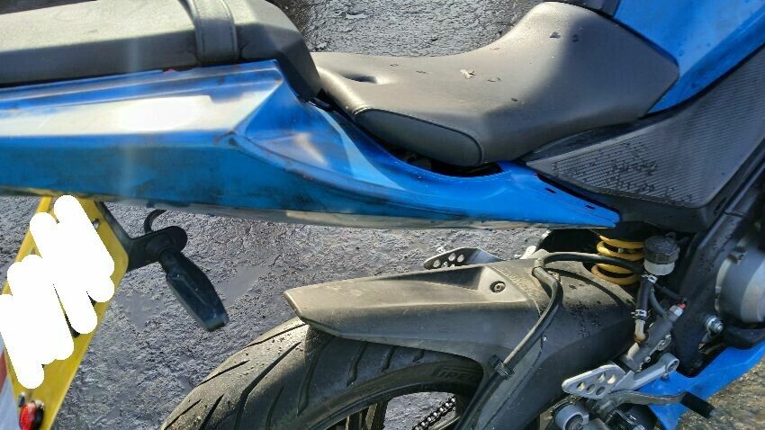 Front mudguard, front fairings, handlebars, fuel tank, n/s fairings, o/s fairings, ignition barrel damaged, ignition wiring damaged, seat ,rear fairings, scuffs and scratches all over, general wear and tear for age