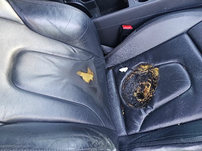 N/s quarter panel, door,wing, front bumper, o/s door, quarter panel, scuffs wear and tear drivers seat has been burnt see pics