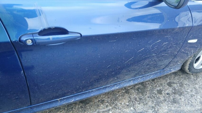 Front bumper, bonnet, n/s front wing, n/s wing mirror, n/s front door, n/s rear quarter, rear bumper, o/s rear quarter, o/s front door, o/s front wing, o/s wing mirror, scuffs and scratches all over, general wear and tear for age and mileage, engine knocking,