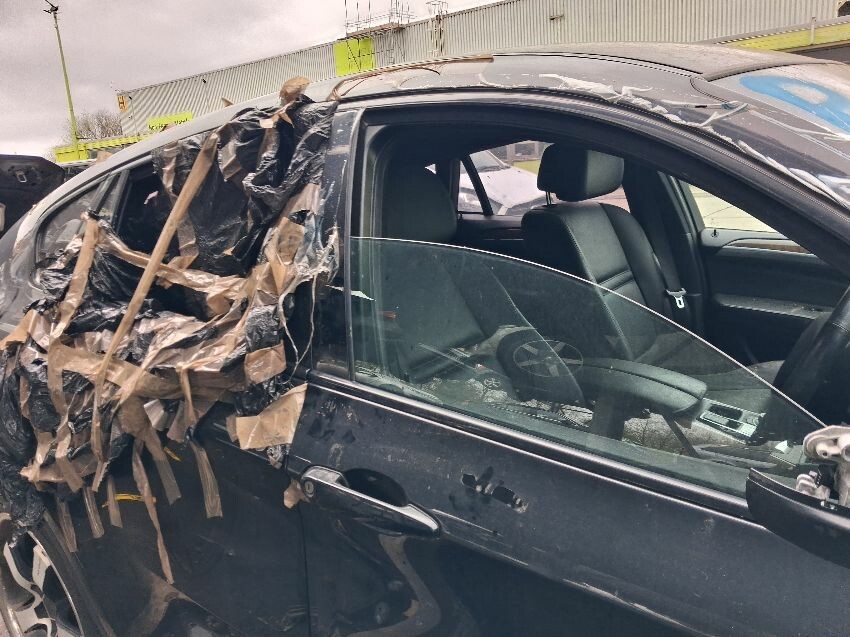 Molded interior, windscreen smashed, n/s headlight half fogged, missing front license plate, drivers door damaged, front splitter damaged, n/s wing damaged, n/s rear door damaged, rear quarter n/s damaged, rear bumper damaged, obd reader is null