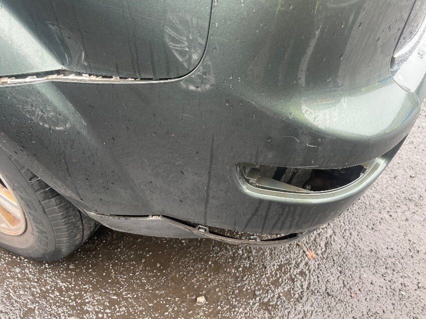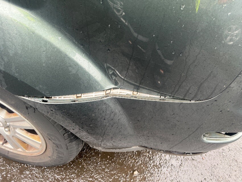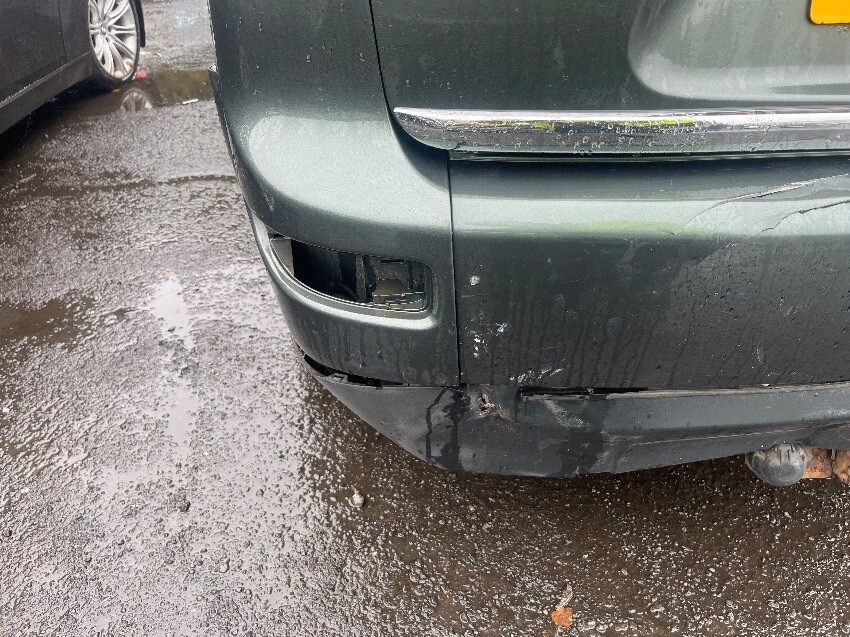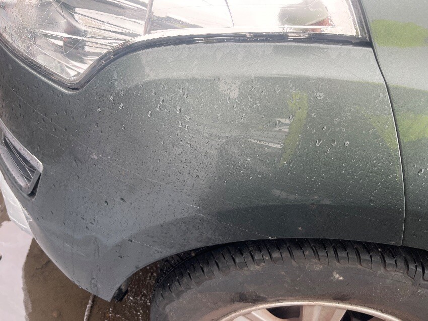 General wear and tear, no radio , few scuffs on back bumper and a crack , light missing out of bumper, bottom of bumper cracked , dent by fuel cap , scuffs on passenger door and dints , few scratches above passenger wheel arch, few scuffs on front bumper.