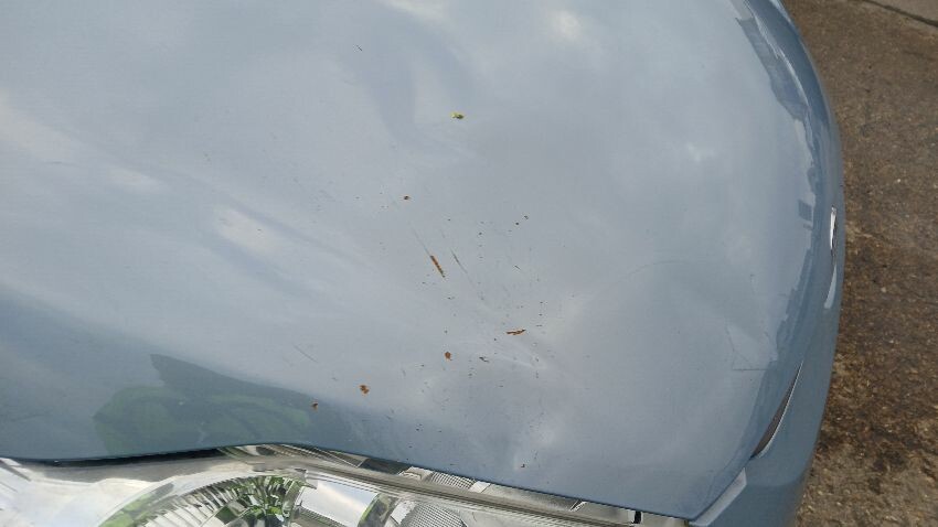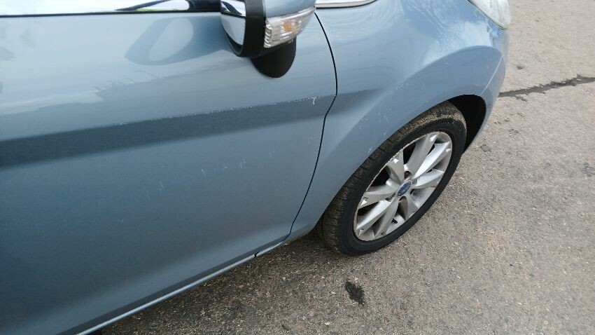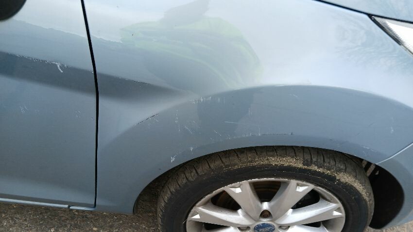 Front bumper, bonnet, n/s front wing, n/s door, n/s front quarter window, n/s wing mirror, n/s rear quarter, rear bumper, o/s door, o/s front wing, scuffs and scratches all over, general wear and tear for age and mileage
