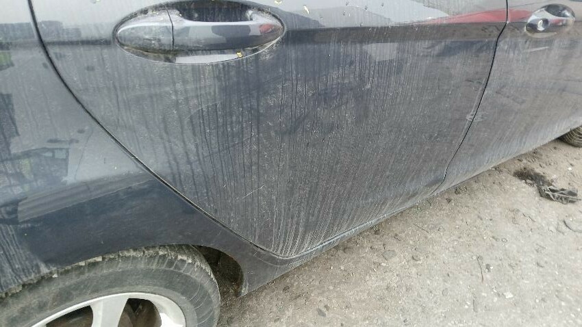 Front bumper, n/s front wing, n/s wing mirror, n/s rear door, n/s rear quarter, rear bumper, o/s rear quarter, o/s front door, o/s front wing, scuffs and scratches all over, general wear and tear for age and mileage