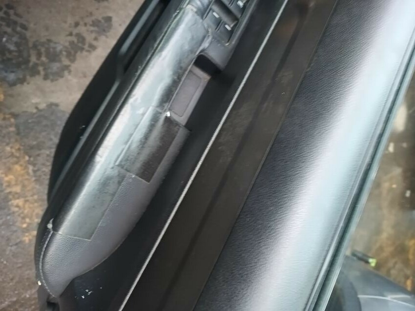 Damaged armrest on the drivers front, flat tire drivers rear, scuffed passenger side rear door
