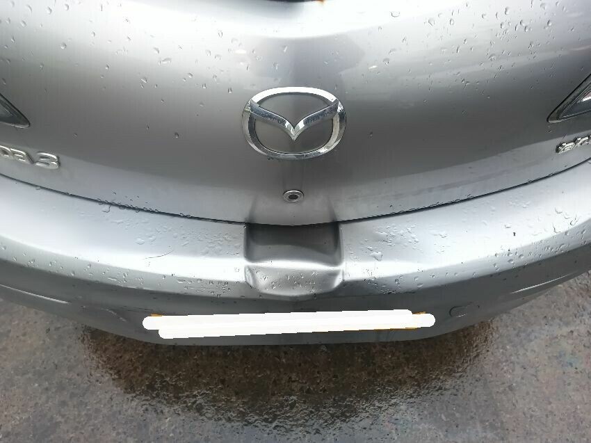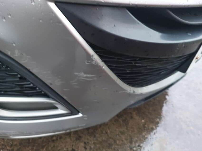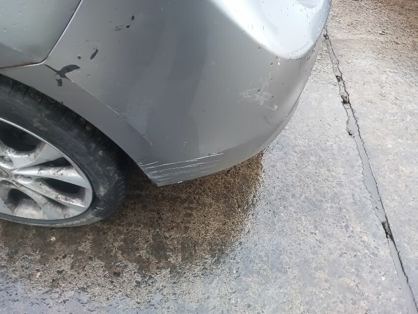 Damaged rear bumper, scratched bonnet, scraped front bumper, general wear and tear