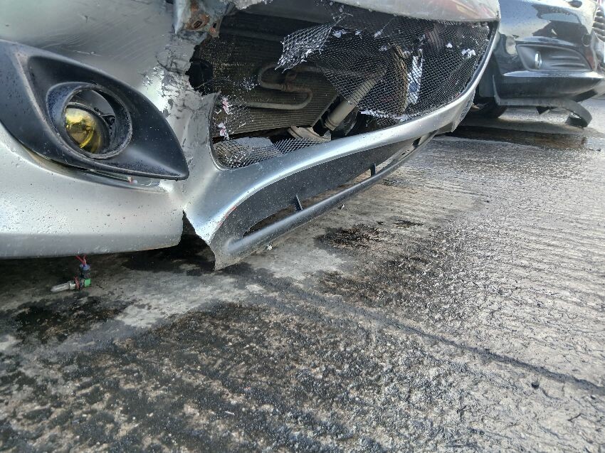 Front end, airbags deployed, windscreen, os door, bonnet jammed, front bumper, osf headlight, bonnet, general wear and tear and scratches.
