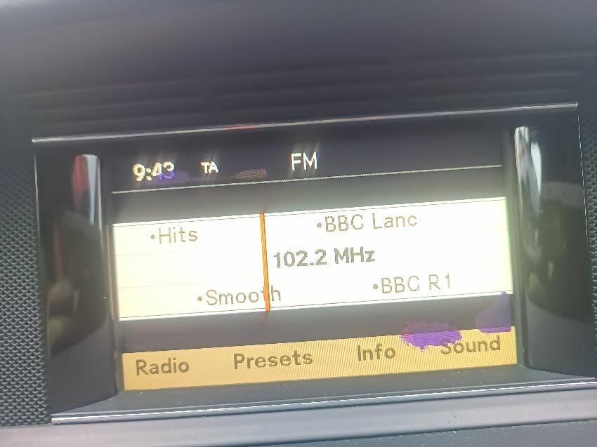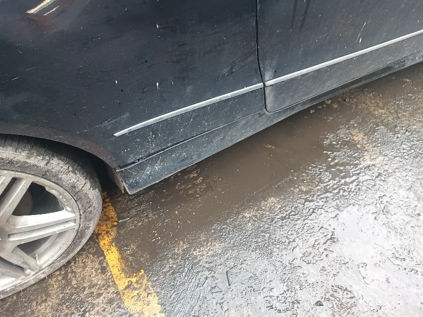Damaged multimedia display, drivers side side skirt is loose, rear bumper trim is loose, general wear and tear