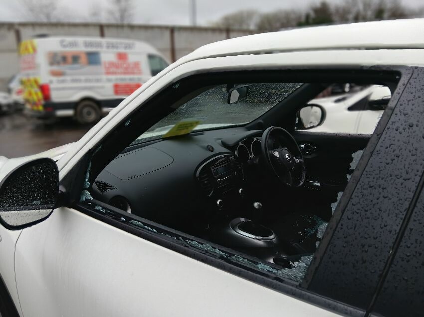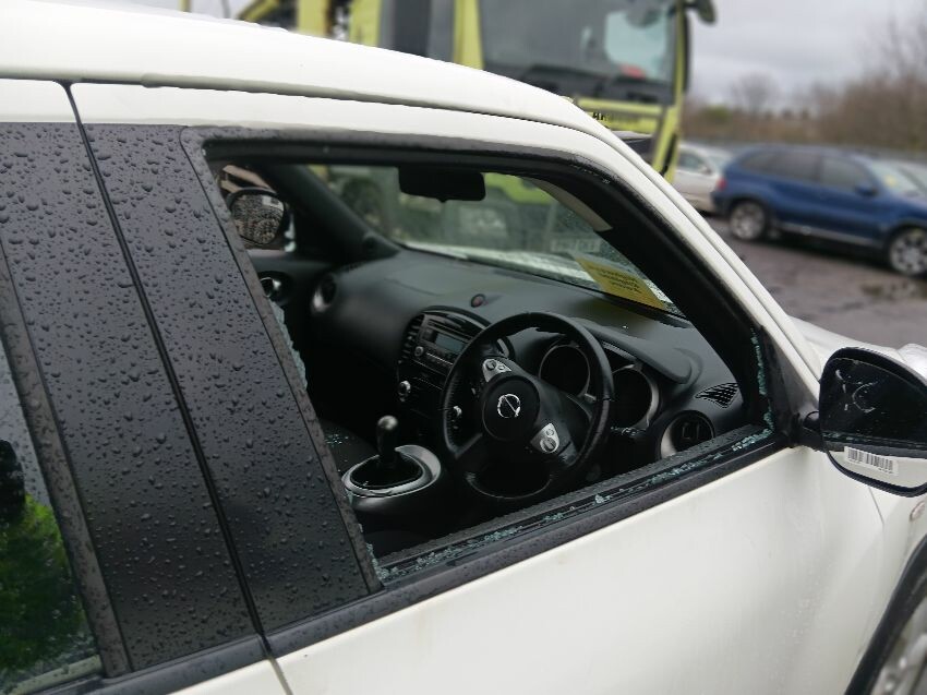 Both front windows, vehicle is deadlocked, interior soaking, front bumper, general wear tear and scratches