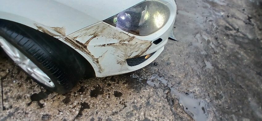 Front bumper, bonnet, n/s sill, n/s front door, n/s wing mirror, n/s rear quarter, rear bumper, o/s rear quarter, o/s front door, o/s front wing, scuffs and scratches all over, general wear and tear for age and mileage, interior soiled