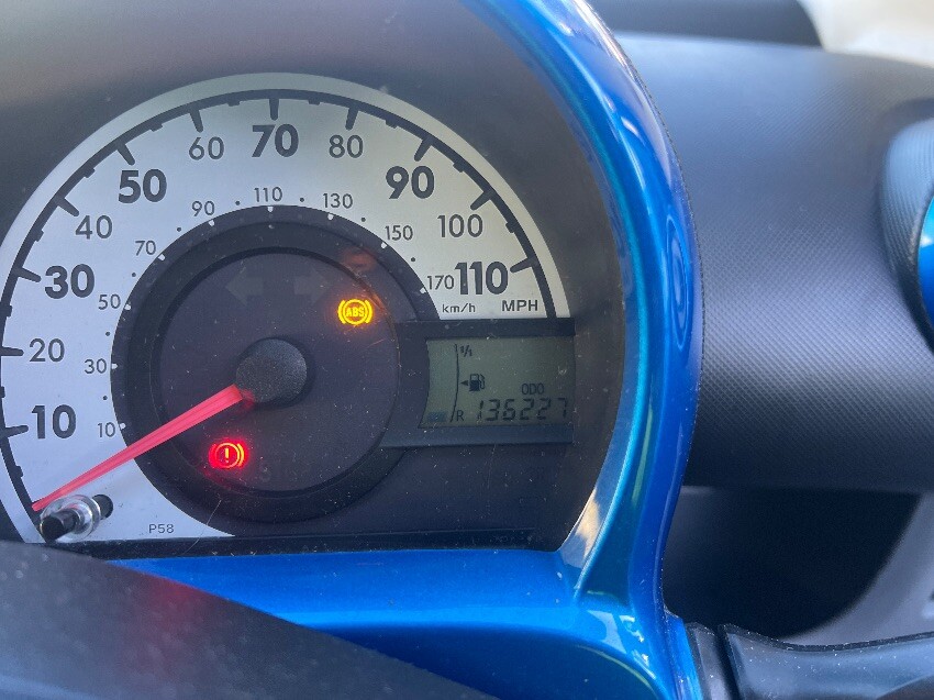 Low on fuel, abs light, exhaust, mould inside, front bumper, nearside front passenger door, nearside rear wheel arch, rear bumper, offside front passenger door, general wear and tear.
