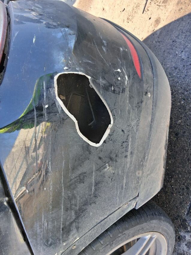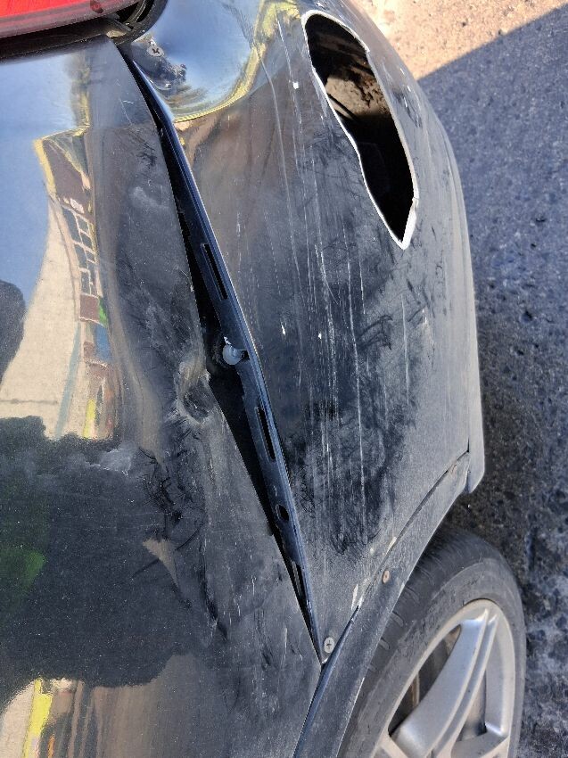 Front bumper , nearside front wing, nearside mirror, nearside rear wing, rear bumper, offside rear wing, inside mirror missing , general wear and tear .