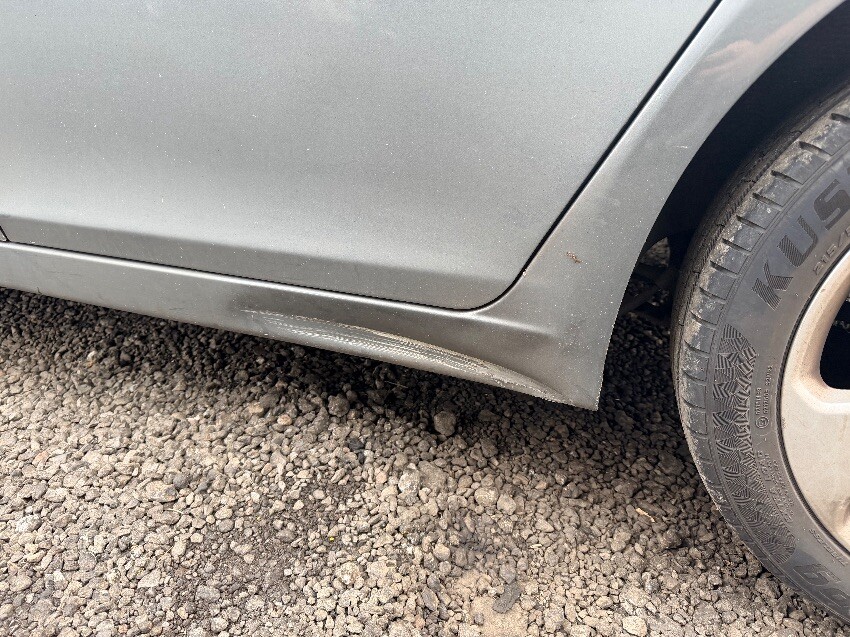Scuffs on front bumper. n/s sill dented under rear door. rear wiper missing. rear bumper scuffed o/s corner. dent on rear o/s door. general wear and tear.