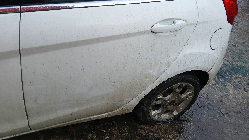 Front bumper, bonnet, n/s front wing, n/s wing mirror, n/s sill, n/s rear quarter, rear bumper, o/s rear quarter, o/s front door, o/s wing mirror, o/s front wing, scuffs and scratches all over, general wear and tear for age and mileage