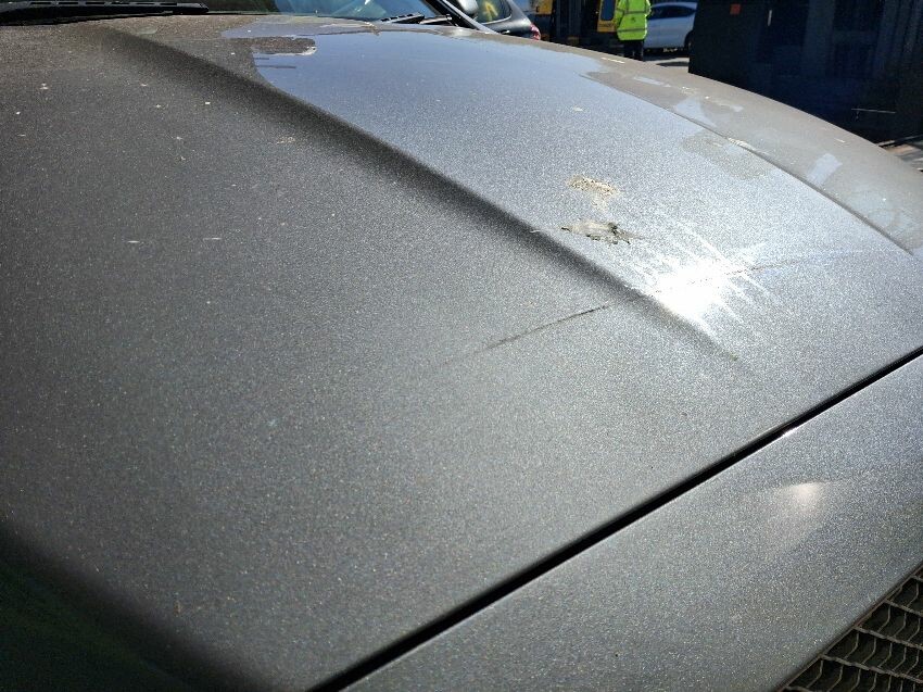 Master warning light on, front bumper damaged, bonnet damaged, headlights sun damaged, o/s/rear door damaged, rear bumper damaged, n/s/front wing damaged, o/s/rear panel damaged, water behind rear light lenses, general wear and tear,