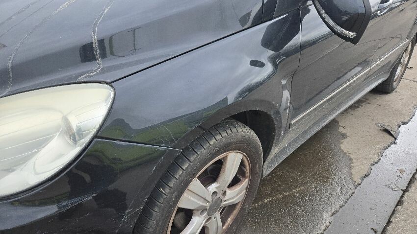 Bonnet damaged, front bumper damaged, nsf wing damaged, osf wing damaged, exhaust blowing, restraint system light on, interior in poor condition, fabric seats dirty, osf door scratched, osr door scratched, rear bumper damaged, rear hatch has scratches, ns mirror damaged, general wear and tear,