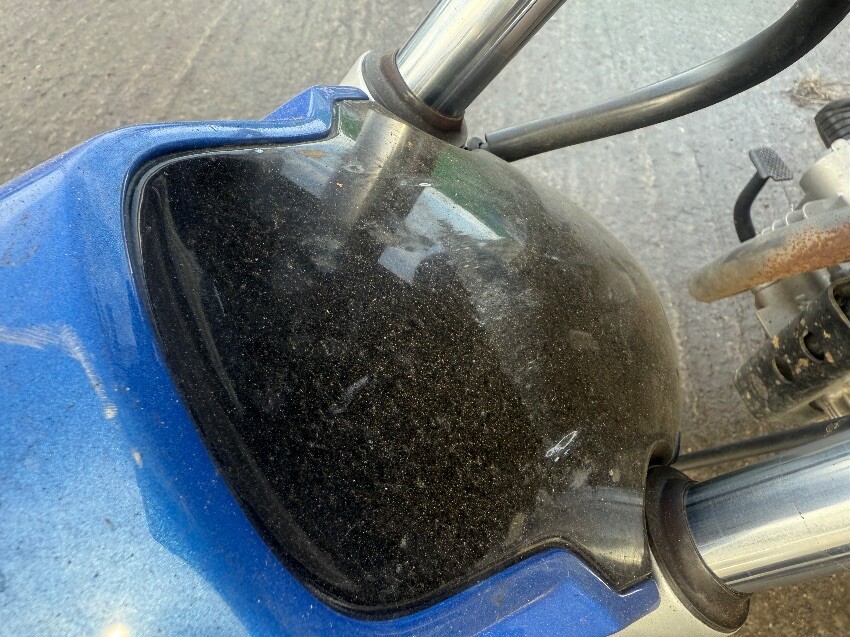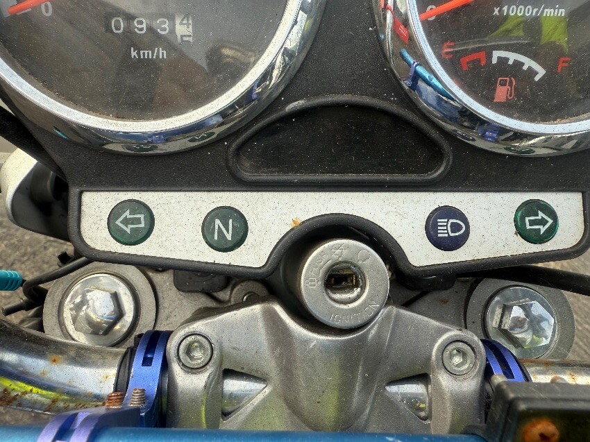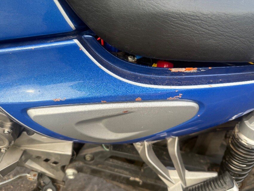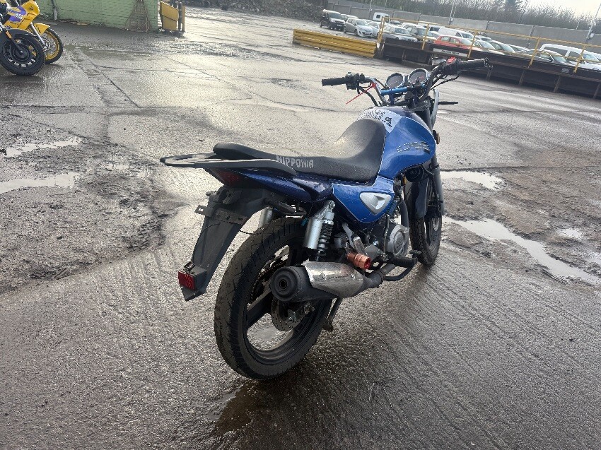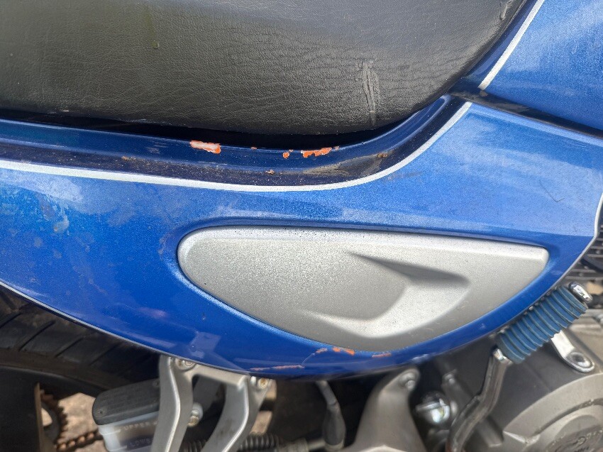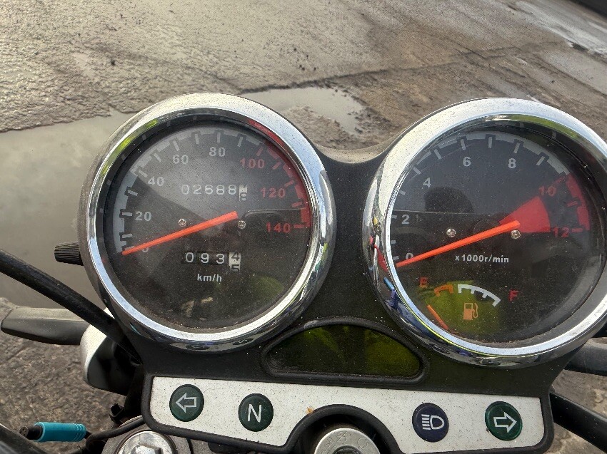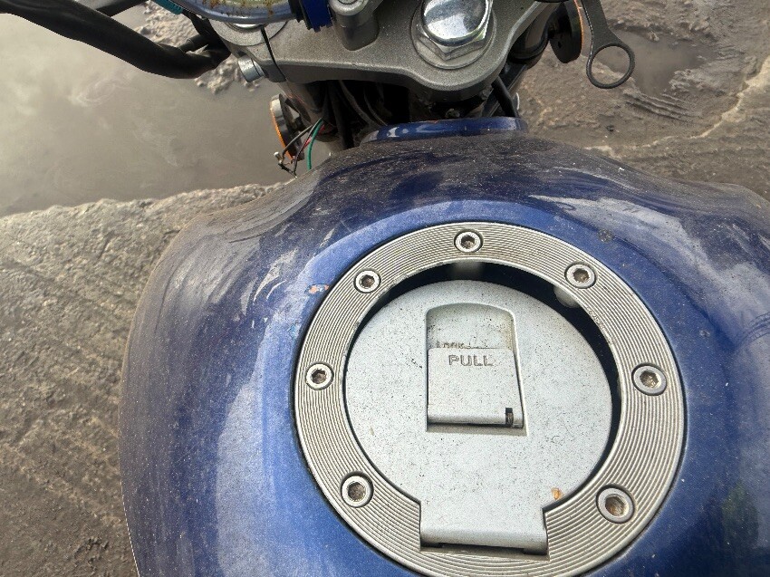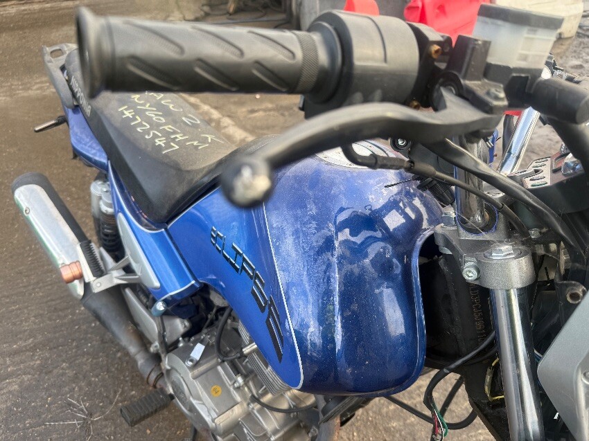 No rear light, o/s/rear plastics, fuel cap, no mirrors, ignition, o/s/front brake lever, n/s/front plastics, general wear and tear.