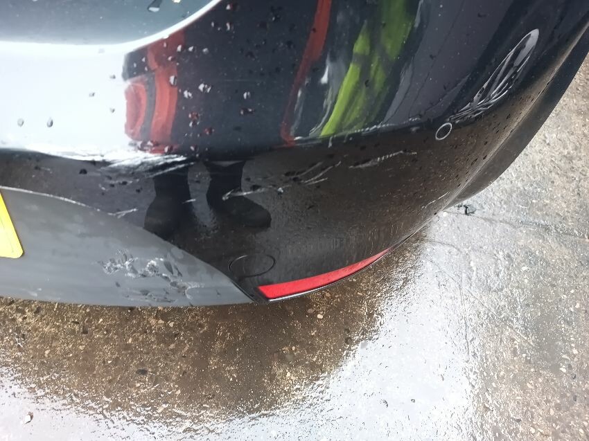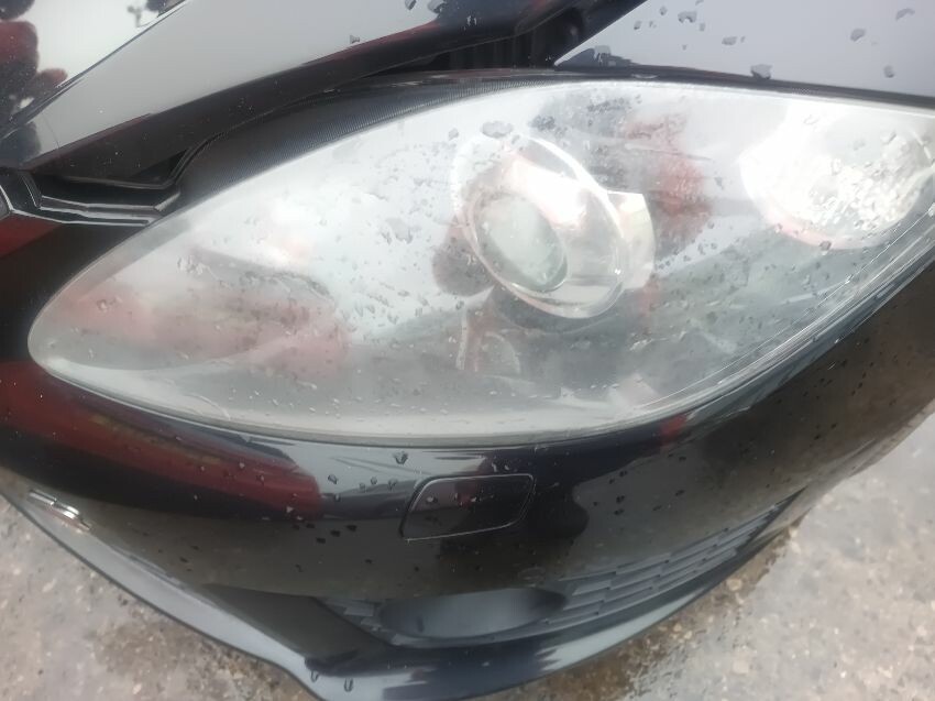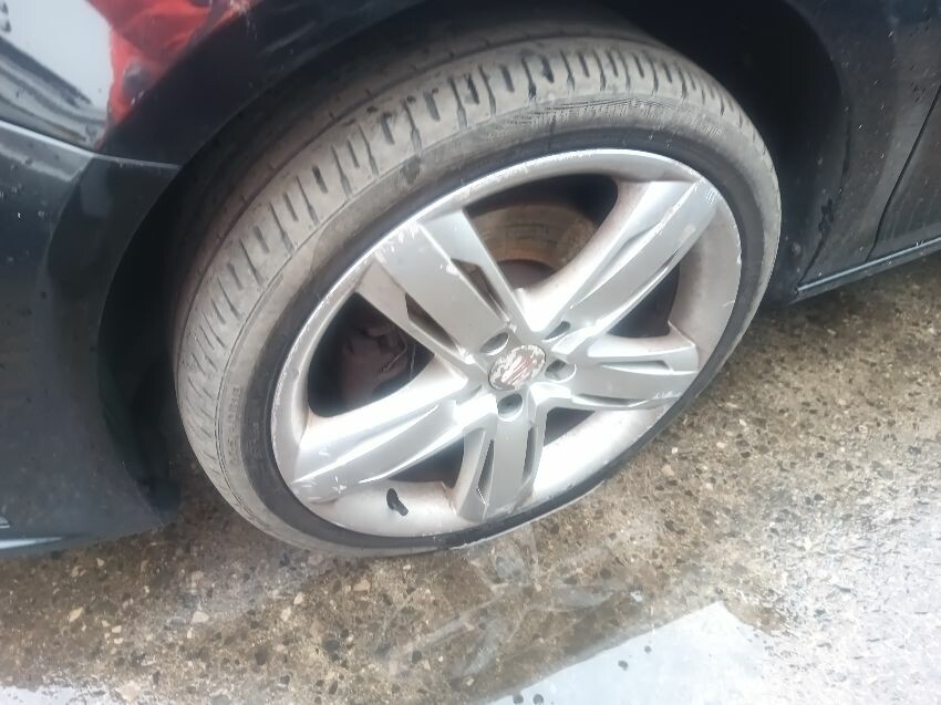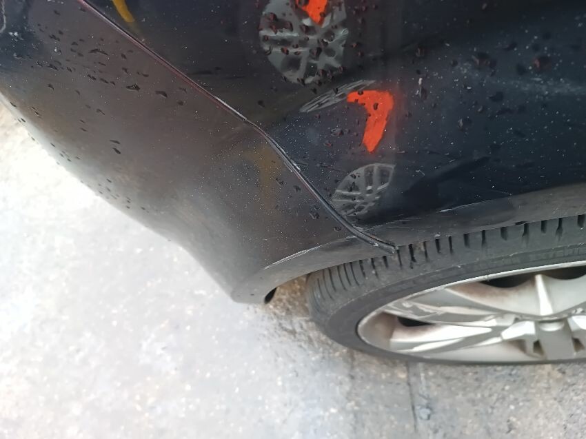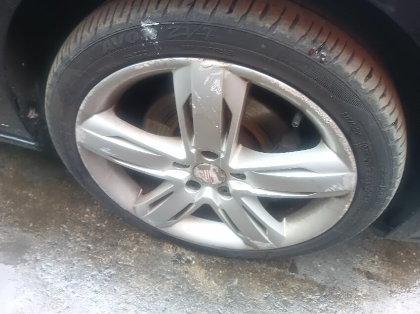 Washer fluid is low, shift lock warning light is on, lighting fault light is on, battery loose, rear bumper damaged & loose, drivers side front wing dented, passenger side headlight has internal condensation, passenger front wheel is flat & damaged, drivers front wheel is scuffed, general wear and tear.
