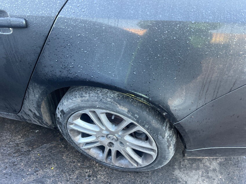 Front bumper, key blade stuck in ignition, front bumper, offside front passenger door, rear bumper, rear light, nearside rear wheel arch, general wear and tear.