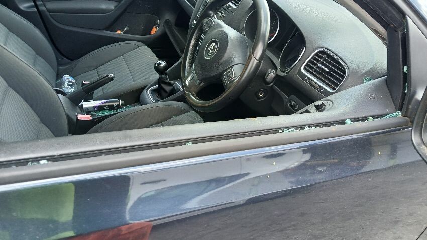 Front bumper, n/s front wing n/s wing mirror, n/s sill, n/s rear door, n/s rear quarter, rear bumper, o/s rear quarter o/s front door, o/s front window smashed, o/s wing mirror, o/s front wing, scuffs and scratches all over, general wear and tear for age, deadlocked