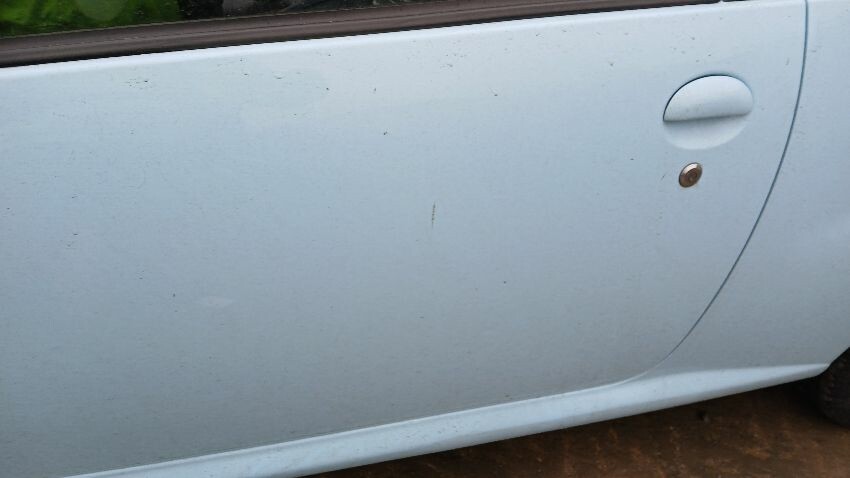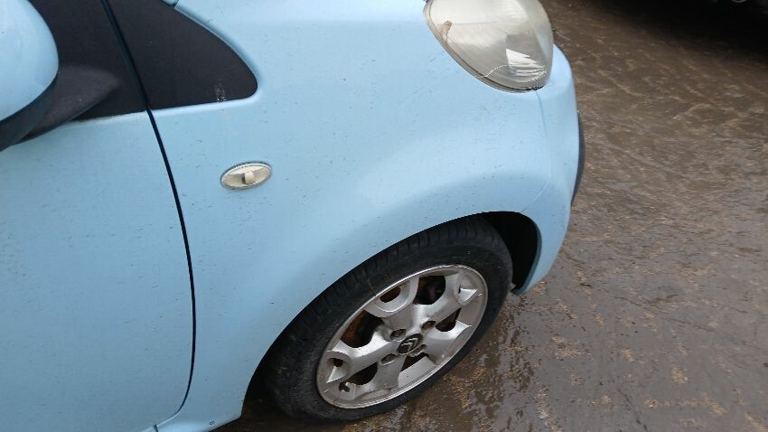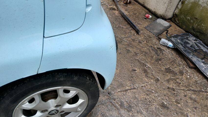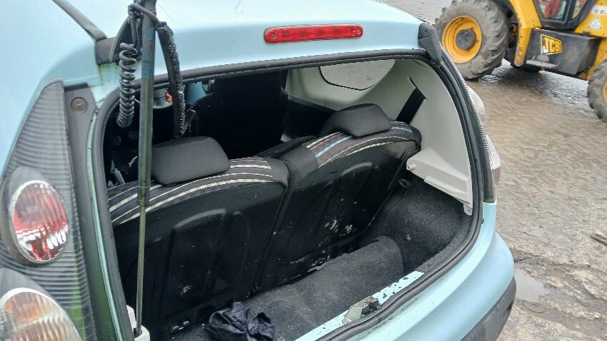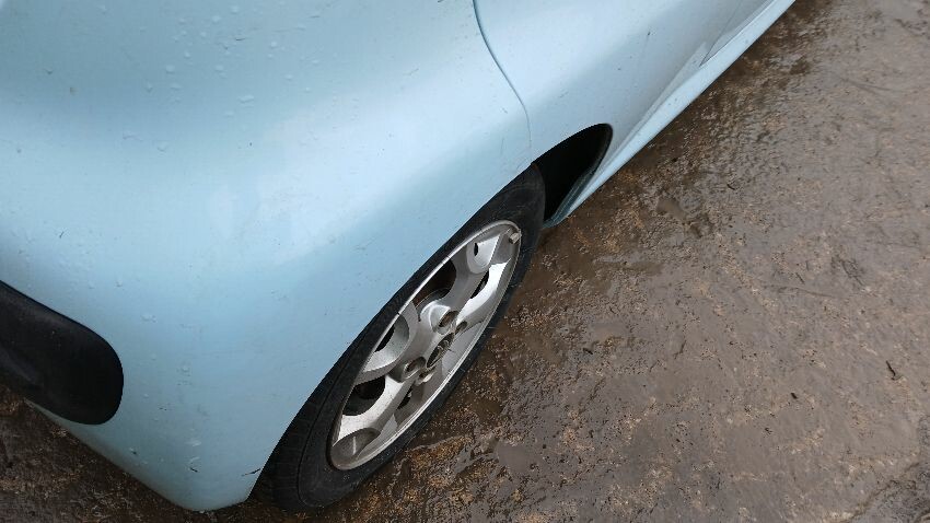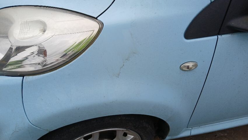 Front bumper, bonnet, n/s front wing, n/s wing mirror, n/s door, rear bumper, rear windscreen smashed, boot lid, o/s rear quarter, o/s door, scuffs and scratches all over, general wear and tear for age and mileage