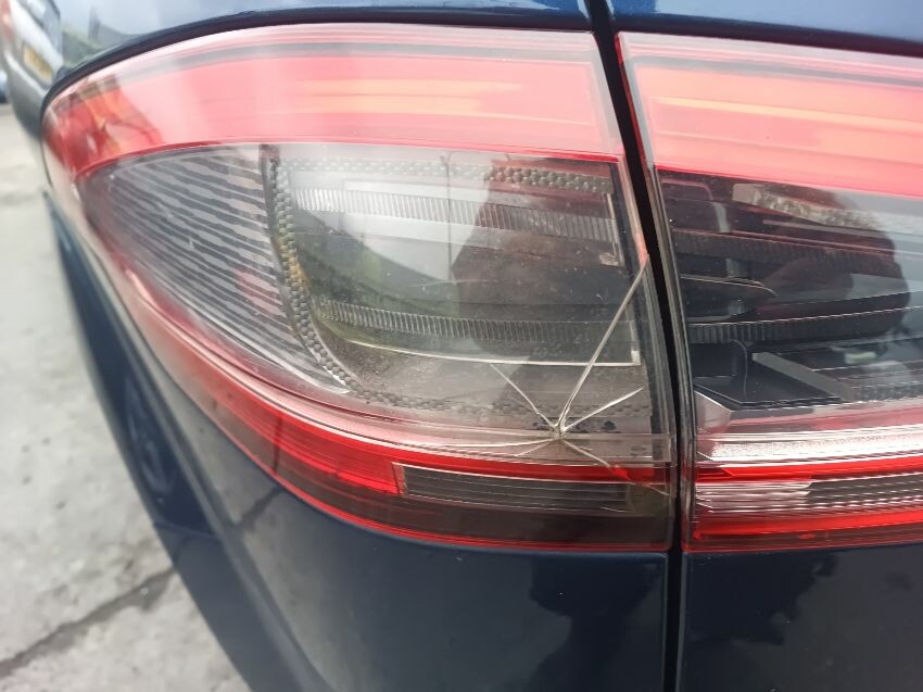 Cracked passenger side outer taillight passenger side wing mirror is damaged, front bumper is loose general wear and tear