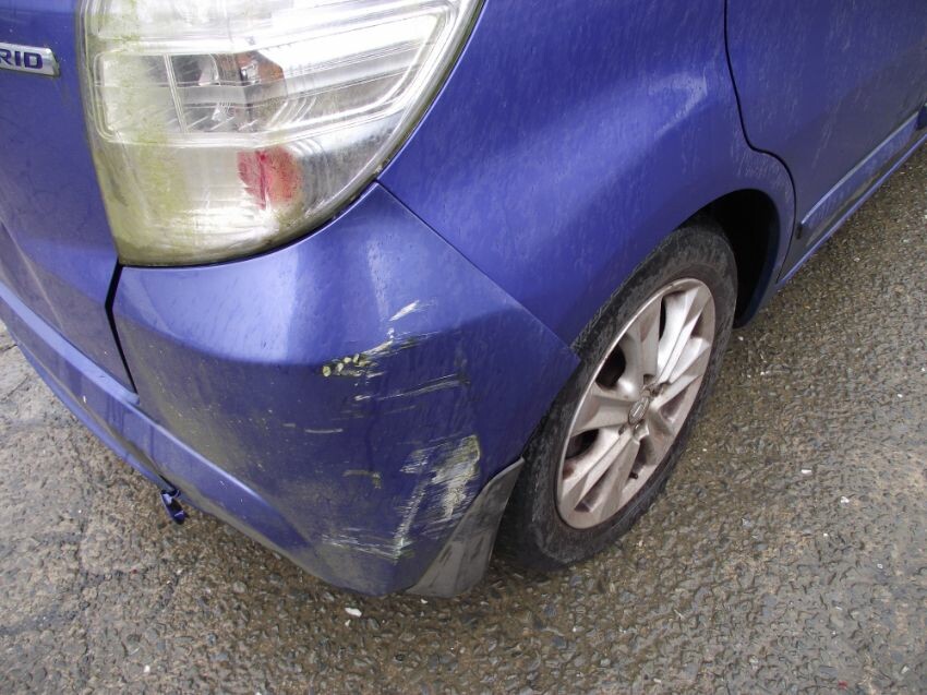 Damage to front bumper, all nearside panels, nearside mirror, rear bumper, tailgate (& won't open), and 2 x flat tyres. interior dirty.