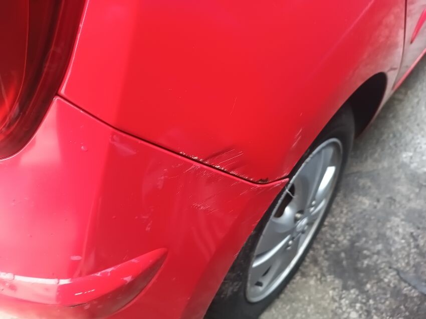 Dented, drivers rear panel, damaged rear bumper, dented bonnet, damaged passenger side wing mirror, general wear & tear