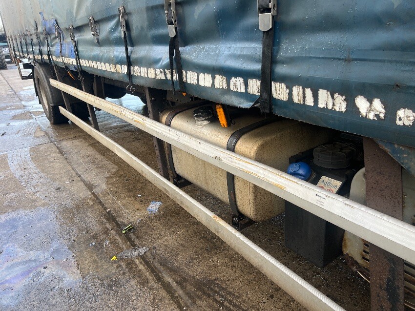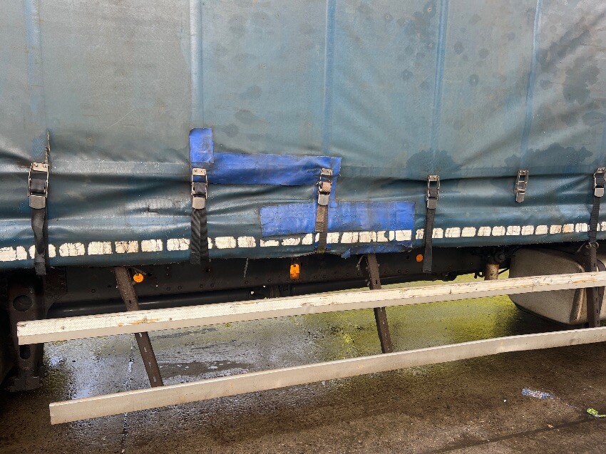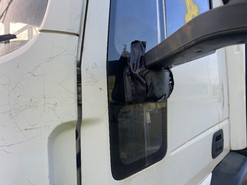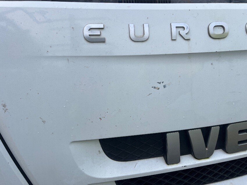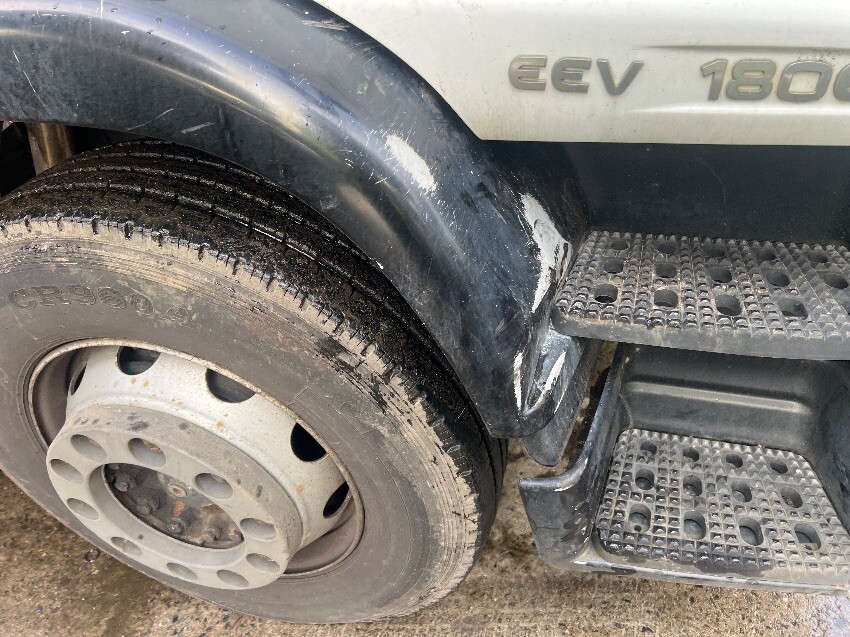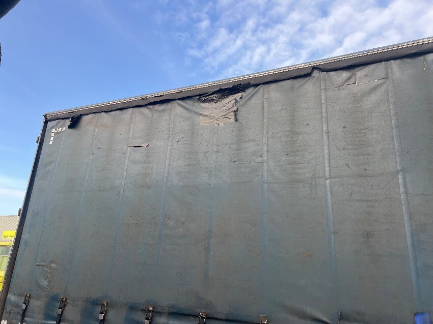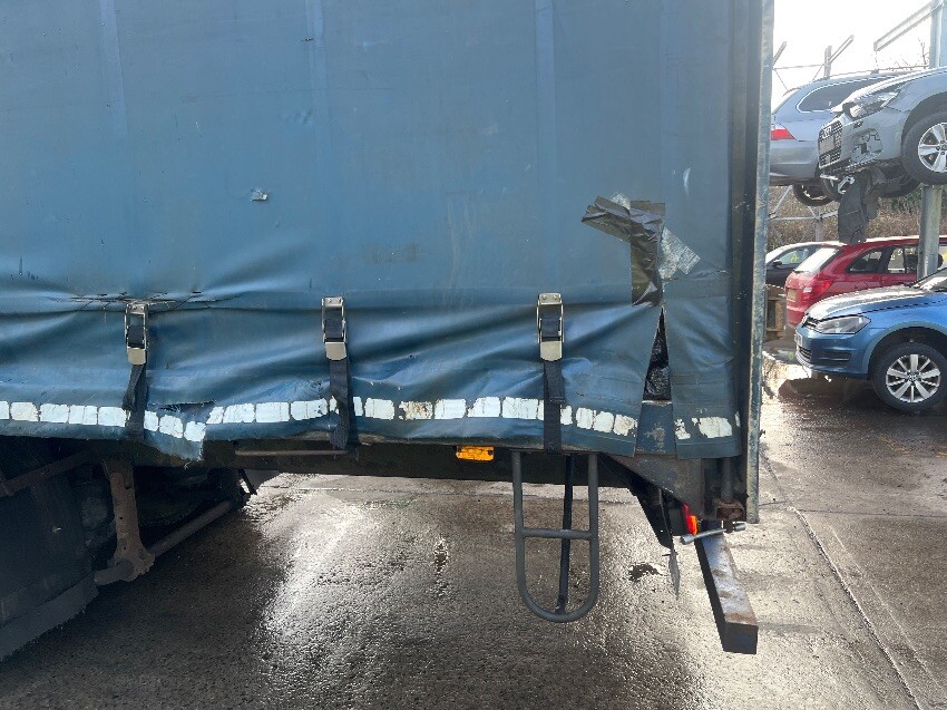 Windscreen cracked, front bumper, nearside mirror, nearside side step, nearside curtain is ripped, nearside side rail, rear bumper, rear doors, offside curtain is ripped, offside side rail, offside front wheel arch, offside wing, general and tear.