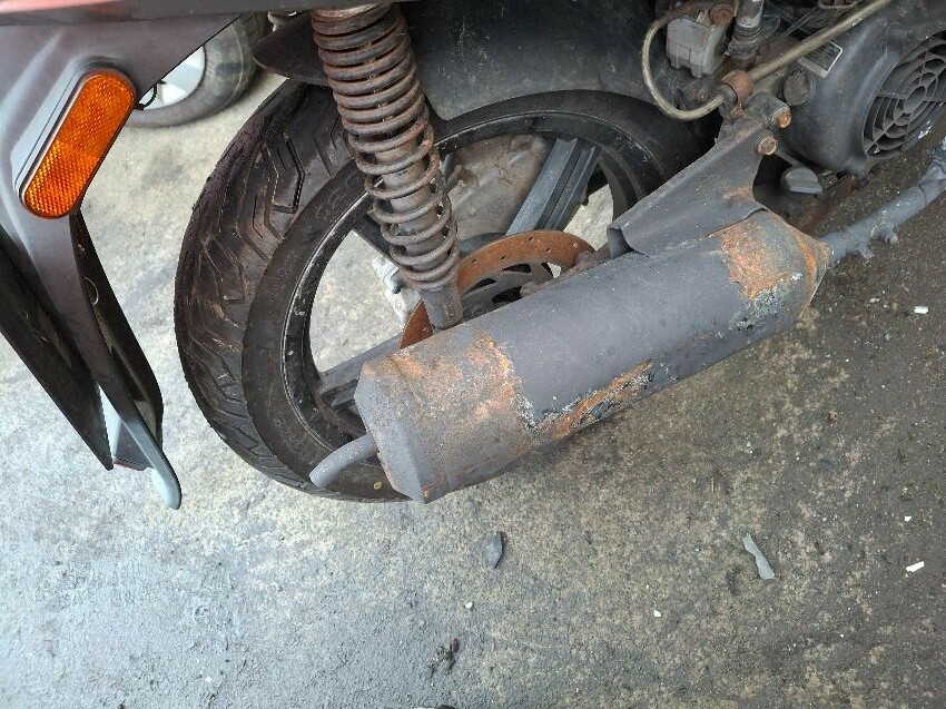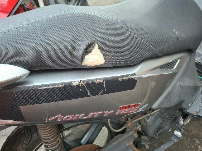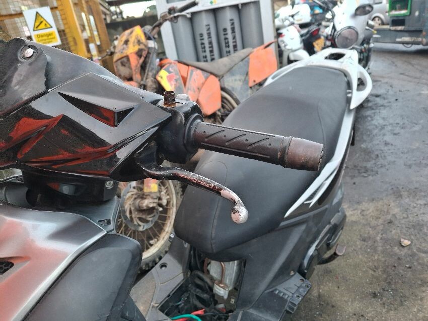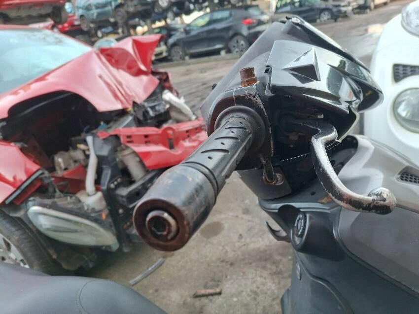 Wear and tear. mirrors missing. trim, handlebars and seat damage. major and minor scratches, dents, cracks and paint damage to the vehicle.