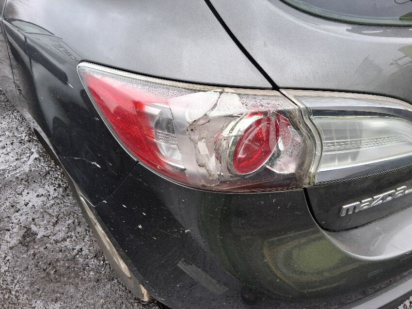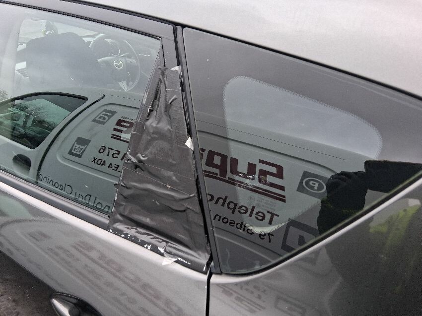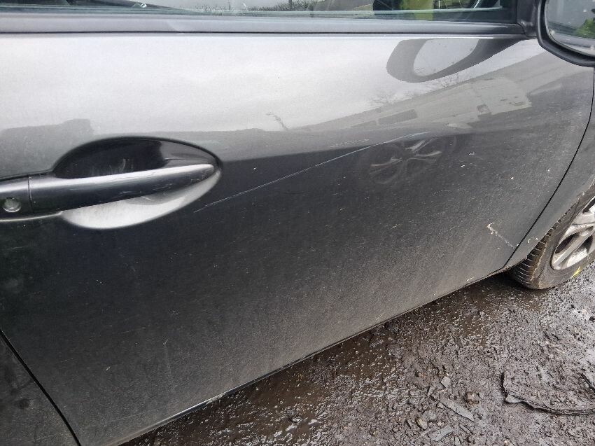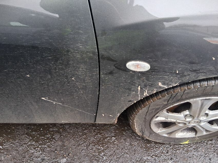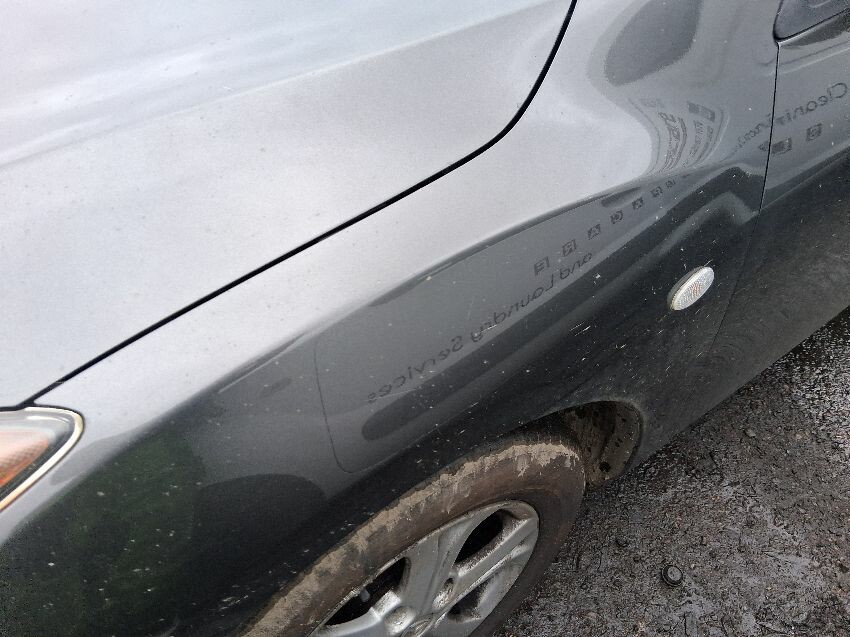 Low on fuel, coolant sign on, rear bumper, boot lid, o/s quarter, o/s doors, o/s mirror, o/s wing, front bumper, bonnet, n/s wing, n/s mirror, n/s doors, n/s/r window smashed, n/s quarter, n/s/r light, roof, general wear and tear and scratches.
