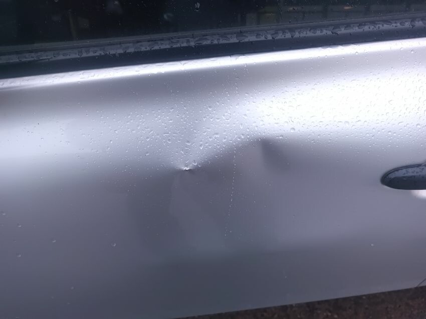 Hatch is covered in dents, rear bumpers damaged, dent in passenger rear door, dent in passenger front door, general wear & tear