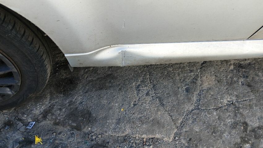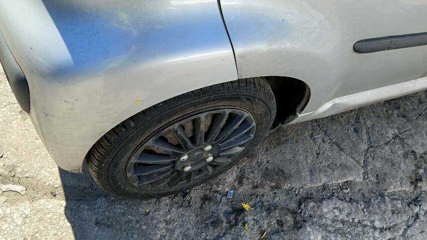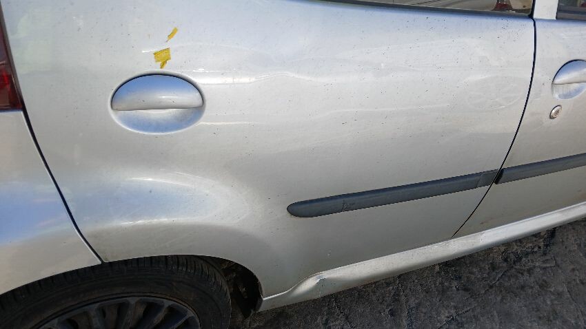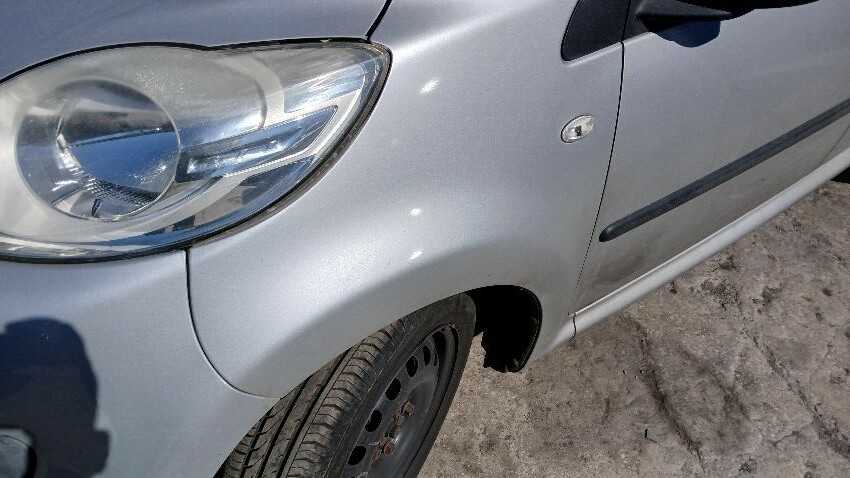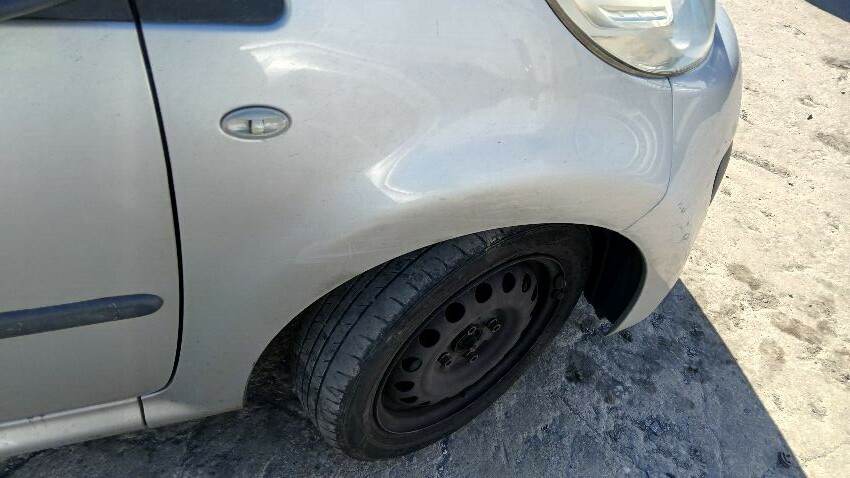 Front bumper, n/s front wing, n/s front door, n/s rear quarter, rear bumper, o/s sill, o/s front door, o/s wing mirror, o/s front wing, scuffs and scratches all over, general wear and tear for age and mileage, areas of rust throughout