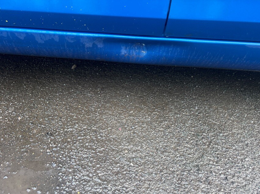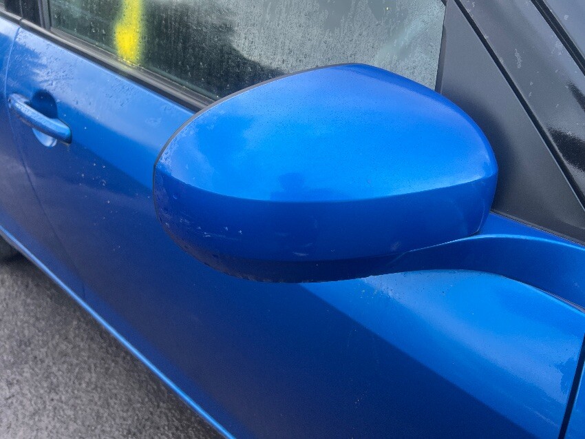 Bumper, offside mirror, nearside mirror, nearside rear passenger door, nearside sill and nearside rear wheel arch. general wear and tear