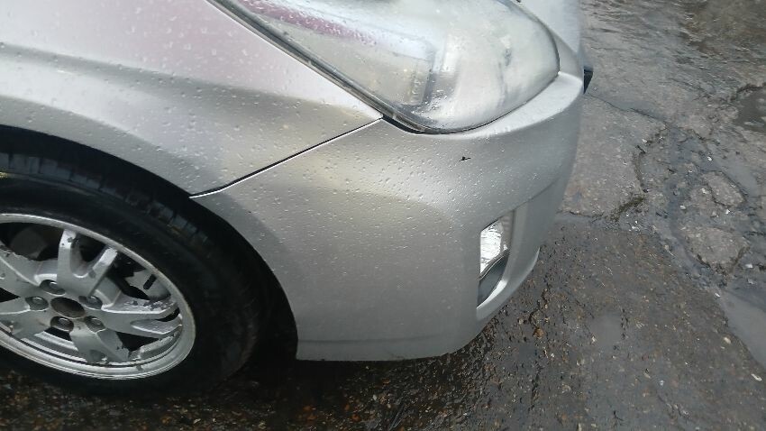 Front bumper, n/s front wing, n/s wing mirror, n/s rear quarter, rear bumper, o/s rear quarter, o/s front door, o/s front wing, scuffs and scratches all over, general wear and tear for age
