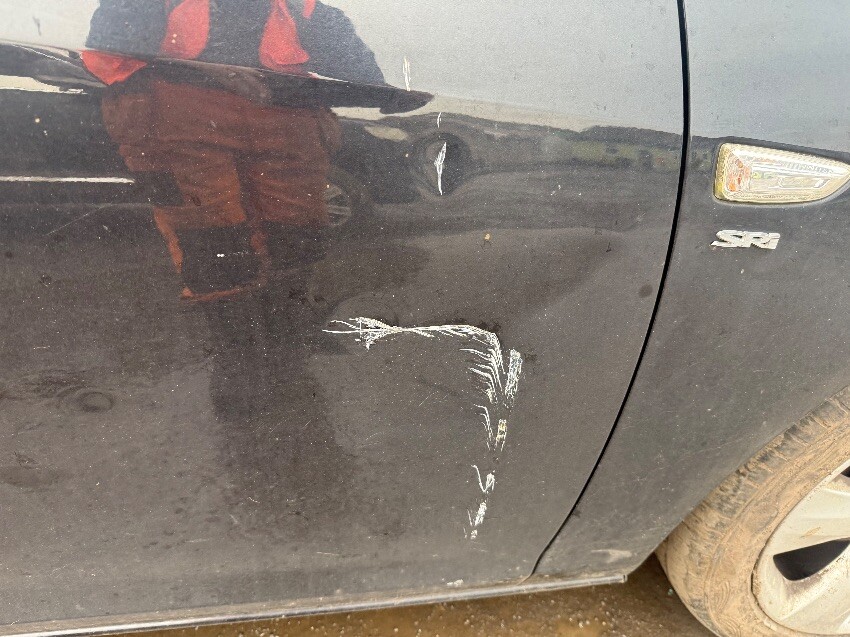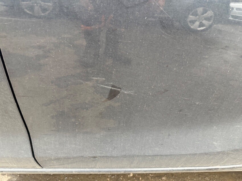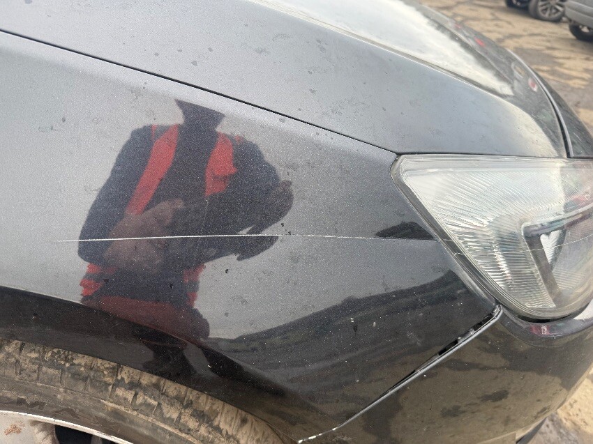 Fuel cap cover, osf window, osf door, os mirror, os wing, front bumper, nsf tyre, nsr door, general wear and tear.