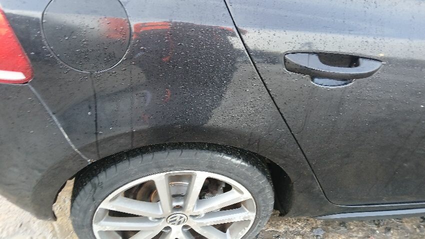 Front bumper, n/s front wing, n/s wing mirror, n/s rear door, rear bumper, o/s rear quarter, o/s front door, scuffs and scratches all over, general wear and tear for age