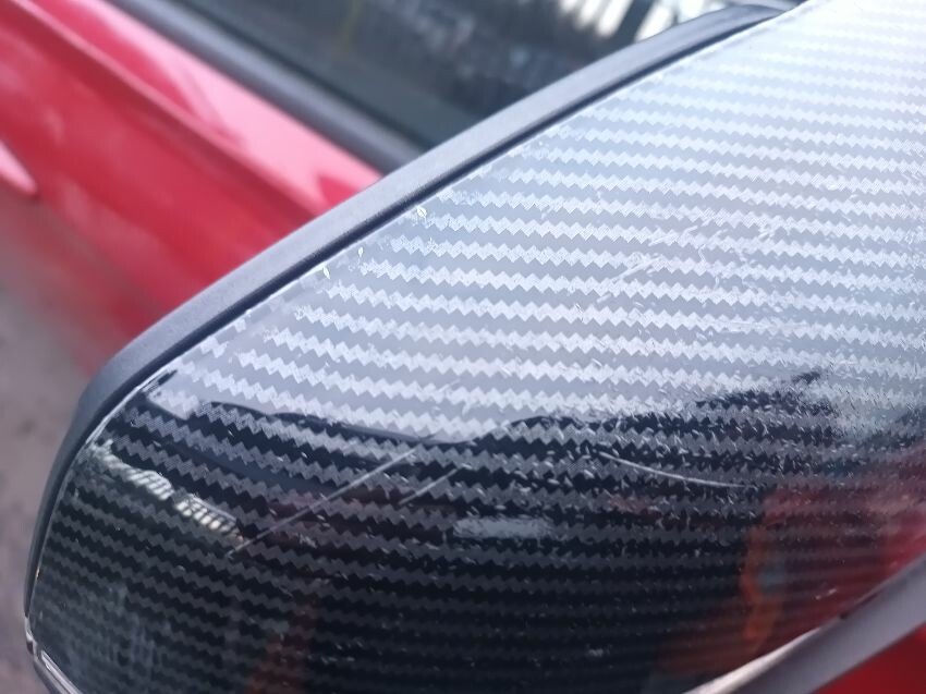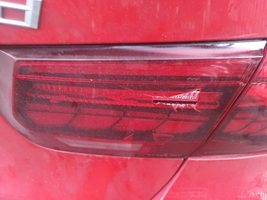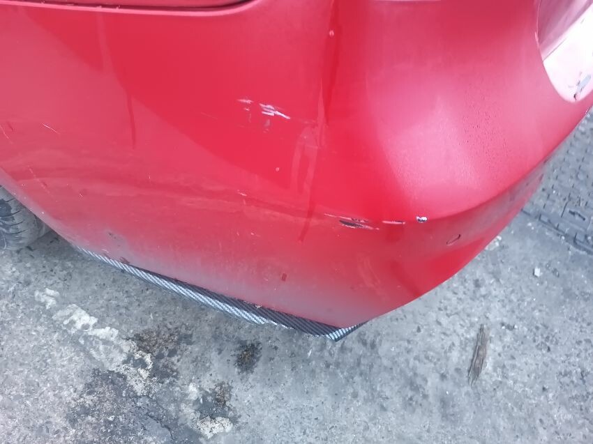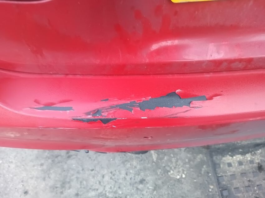 Drivers front door has dropped & isn't opening from the outside, smoke from exhaust, scratched drivers wing mirror, scratched passenger mirror, loose front bumper, rear bumper damaged, drivers inner tail light is broken, dog hairs on back, general wear & tear
