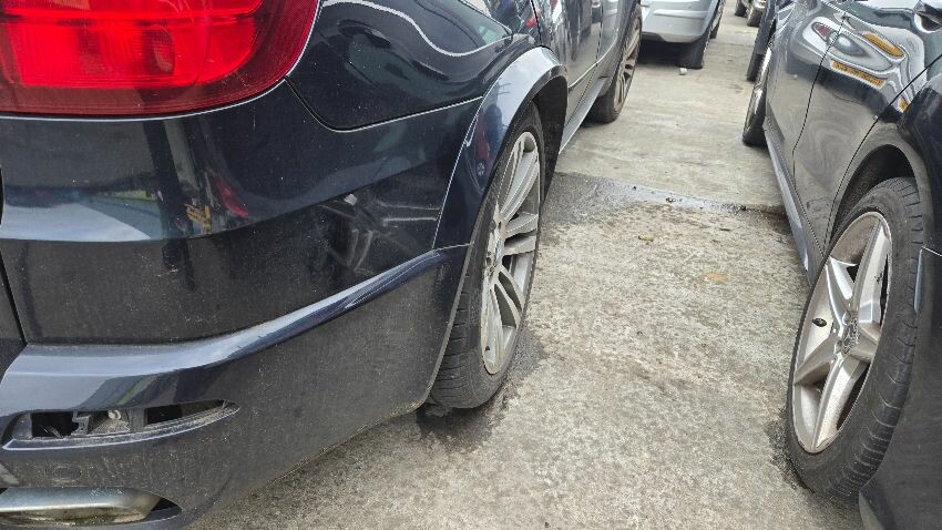 Front bumper damaged, rear bumper damaged, rear suspension dropped, rear wheel camber incorrect, general wear and tear