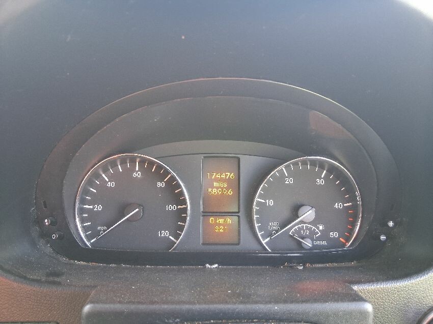 Interior screen not functioning, age and work related marks around van, rust visible around van, rear doors, rear bumper, o/s panel, o/s door, o/s mirror, o/s wing, front bumper, bonnet, n/s wing, n/s mirror, n/s doors, n/s quarter, general wear and tear and scratches.